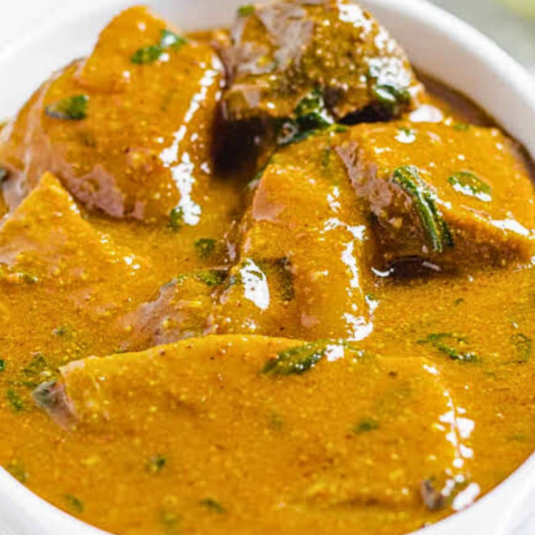A rich melon-seed soup cooked in a savory pepper base with leafy greens and assorted meats or seafood for a bold, comforting Nigerian staple..