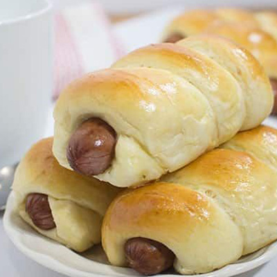 Fluffy baked pastry wrapped around a juicy, well-seasoned sausage for the perfect grab-and-go snack.